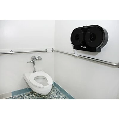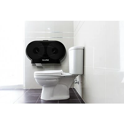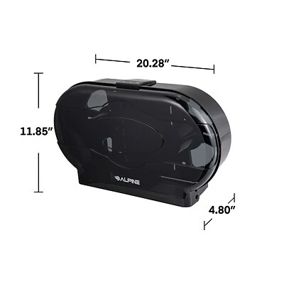 The Alpine Economy Double Jumbo Roll Toilet Paper Dispenser is your solution to keep your high-traffic bathrooms stocked. Our dispenser can accommodate two jumbo rolls of toilet paper, allowing less frequent stocking. The equipped sliding panel allows the use of one roll at a time, helping reduce waste. With a transparent black cover, you can easily see when it needs to be reloaded. Each dispenser’s mounting hardware is included for an easy, stress-free setup. Also, with our provided key and locking cover, you can be assured your toilet paper dispenser is secure from theft. Alpine’s Economy Double Jumbo Roll Toilet Paper Dispenser is your practical and cost-effective solution to servicing your consumer’s needs.