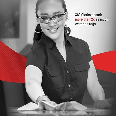 WypAll X60 Cloths are absorbent and reinforced to stay strong for cleaning performance in light duty tasks; they absorb water faster than rags