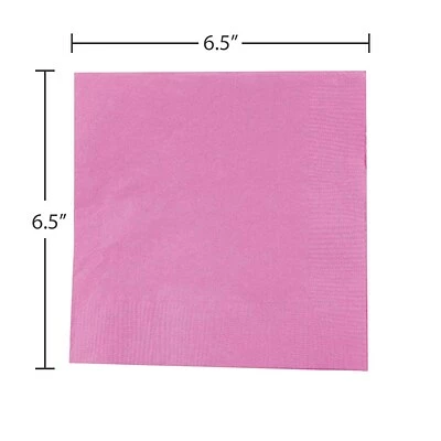 JAM Paper Pink Medium Lunch Napkins are made out of smooth, durable, absorbent, 2-ply paper. Each one measures 6.5 inches on each side and has a perfectly square shape. This shape and size makes them great for placing underneath bowls or for handing out with desert plates. This pack contains an even total of 40 napkins. Each one features a bright and beautiful pink color! Great for parties, these napkins will make a great addition to the table at your next baby shower, bridal shower, girlโs birthday party, Mother’s Day lunch, Valentine’s Day dinner, breast cancer awareness fundraiser, or any other event for which pink fits into the color scheme!