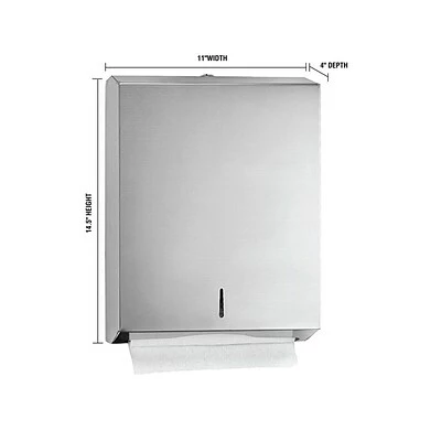 The Alpine Industries C-Fold/Multi-fold paper towel dispenser is ideal for high traffic restrooms, break rooms, food service facilities, health-care facilities and more. Made of durable stainless steel with a brushed finish and features a lock to help prevent tampering and vandalism. The dispenser features a sight window on the dispensers front to monitor fill level and holds up to 400 C-fold or 525 multi-fold towels.