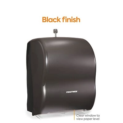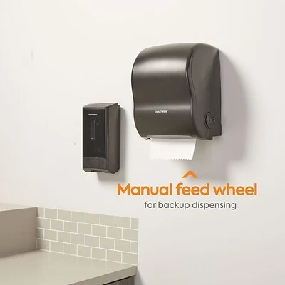 Refill hardwound paper towels effortlessly and keep up with the demands of a busy commercial restroom with this manual paper towel dispenser. The included hardware and dispenser key is included for easy setup and replenishment. By automatically dispensing one sheet at a time, this Coastwide Professional™ manual auto-cut hardwound paper towel dispenser minimizes waste and reduces operational expenses.
