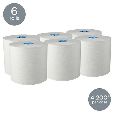 Kleenexยฎ Hard Roll Paper Towels (25637) with Premium Absorbency Pockets, White, for Dispenser (Blue-Core), 700โ/Roll, 6 Rolls/Case, 4,200’/Case