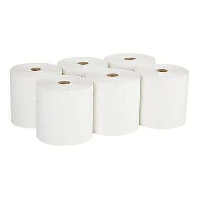 Keep busy restrooms or cleaning supply carts stocked with these paper towel rolls. The high-capacity format delivers 1000 feet of towels with a single roll, reducing the number of replacements needed. Each roll is uniquely designed to work with both automated and manual dispensers for added versatility. With a crisp white color, these Pacific Blue Select paper towel rolls offer a bright, clean look.