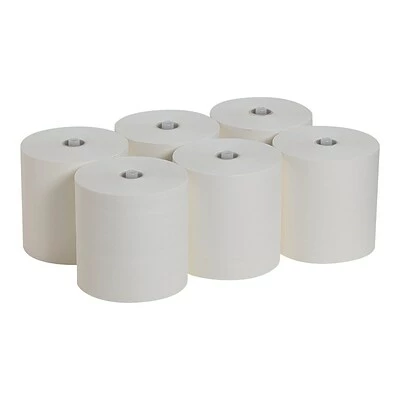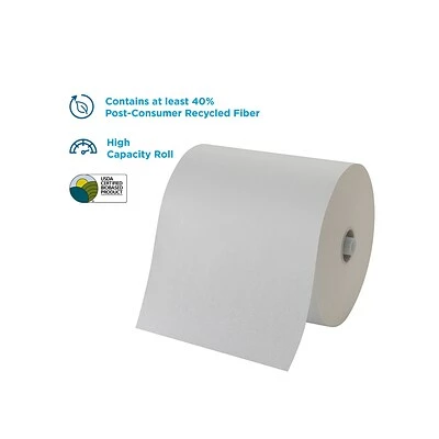 Keep busy restrooms or cleaning supply carts stocked with these recycled paper towel rolls. The high-capacity format delivers 1150 feet of towels with a single roll, reducing the number of replacements needed. Single-ply construction helps reduce paper waste, and the white color offers a crisp, clean look. These Pacific Blue Ultra paper towel rolls work with Pacific Blue Ultra automatic and manual dispensers for fast, easy setup and convenient compatibility.