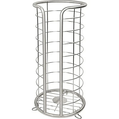 InterDesign® Forma ultra toilet tissue reserve holder provides a secure tool-free installation that adds a touch of classic decor to your restroom. Holder has a contemporary design and is made of brushed stainless steel to withstand rust. This sturdy freestanding design saves space and can easily store up to3 rolls.